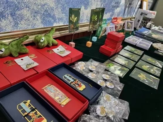 展览共呈现 60 余件生命科学学院师生采集的吉林地区中生代植物化石,涵盖蕨类、银杏、松柏等类群,美术学院学生团队借助计算机技术和AI模拟,还原化石真实形态,兼具学术价值和艺术价值。同时,团队开发了“仿真化石”“书签”等多款文创产品,其中“化石打卡集章”活动和拍照打卡区成为现场最受欢迎的互动项目。
