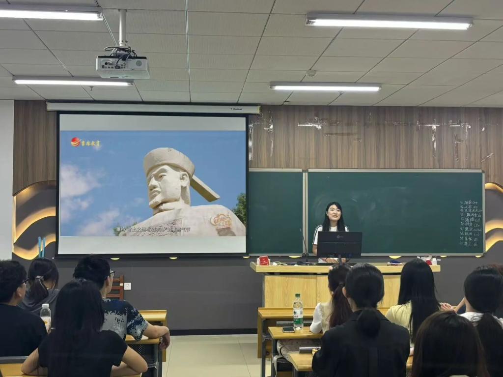 新闻与传播学院辅导员王瑾在班会上讲到: 东北抗联精神中那坚如磐石的理想信念、为民族大义而献身的集体主义意志以及于冰天雪地中顽强求存的艰苦奋斗品质,恰是社会主义核心价值观生动而具象的历史注脚。唯有在历史与现实的交汇处点燃信仰火炬,在情感共鸣与理性认知的双轨上铺设道路,才能真正将红色基因深植于青年心田,这份精神传承的伟力,终将成为支撑青年学子勇毅前行的不灭灯塔。”