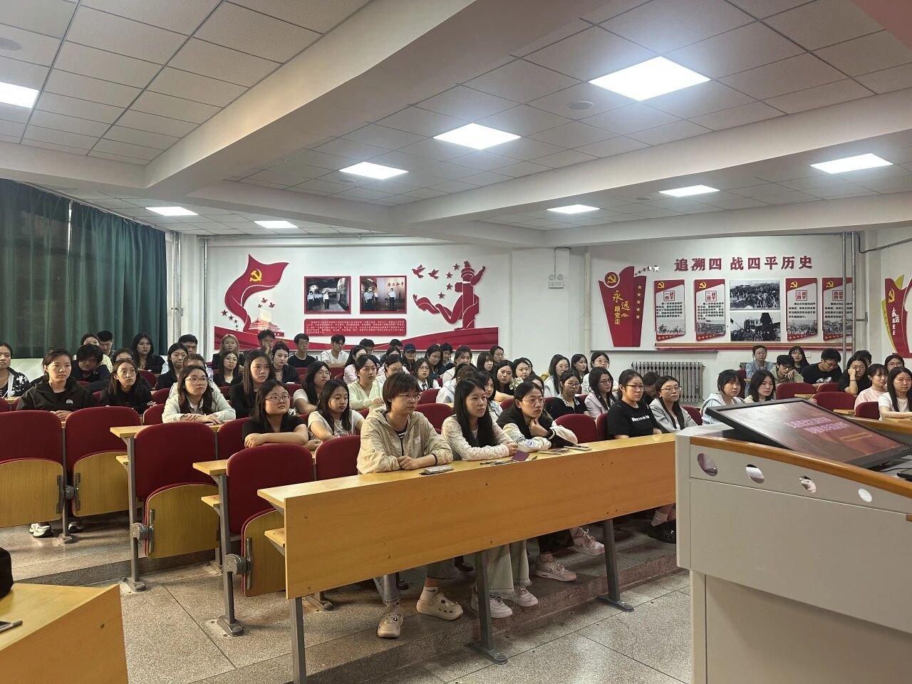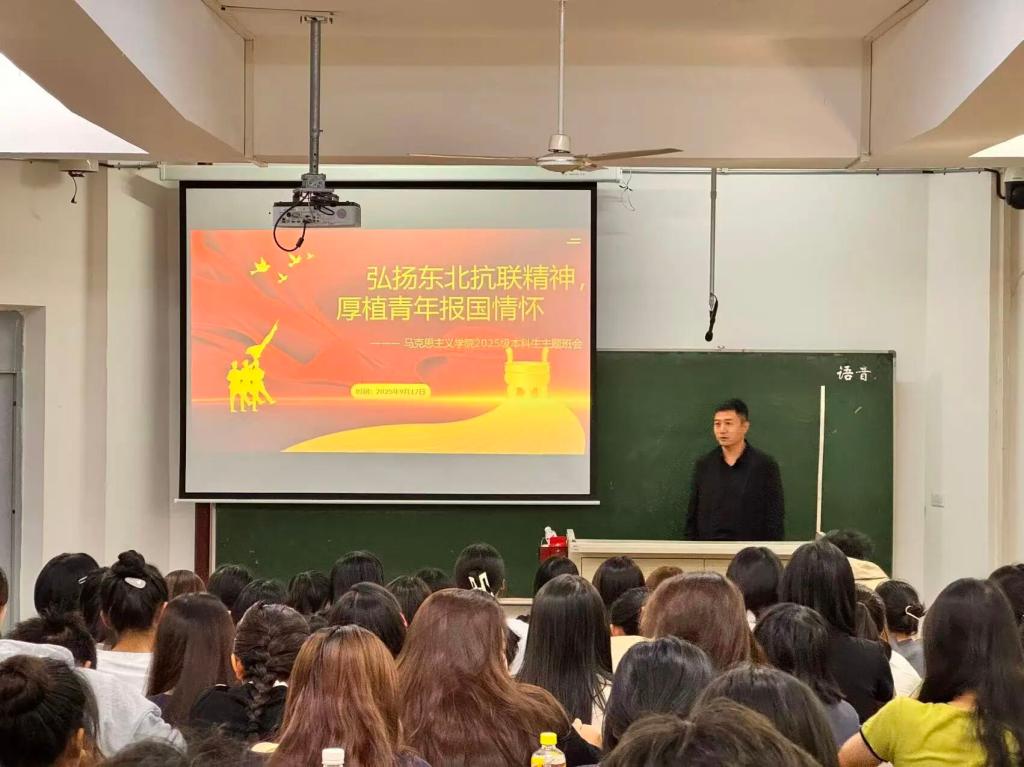 在各学院精心组织下,班会活动形式多样、内容充实。同学们通过深入学习东北抗联历史与英雄事迹,结合“杨靖宇支队”战旗在抗战胜利80周年阅兵式受阅并荣归吉林故里的背景,深刻领会了东北抗联将士忠诚于党的坚定信念,勇赴国难的民族大义,血战到底的英雄气概”的精神内核。各班级通过观看相关纪录片、影片片段,开展观后感交流、讨论演讲分享等活动,增强了抗联精神与个人成长的联结,让红色基因融入青春血脉。