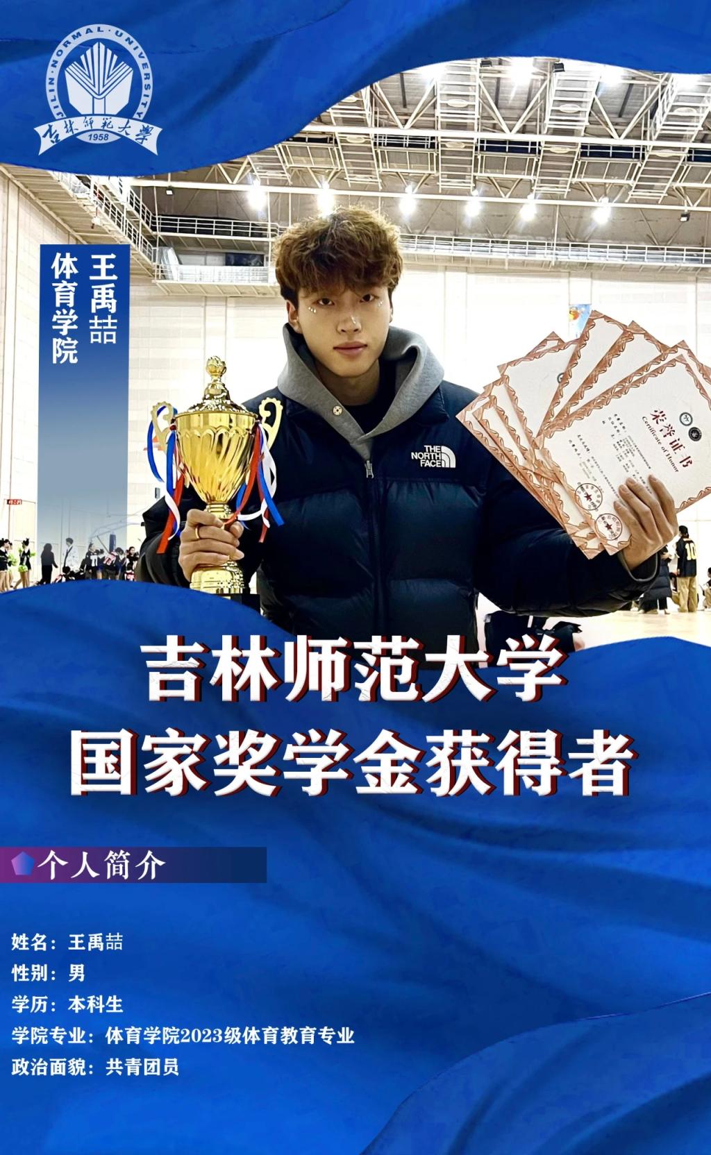 王禹喆同学用自己的实际行动诠释了体育学院学子的风采与担当。他在学习中砥砺前行,在思想上追求进步,在实践里奋勇拼搏,是一位全面发展、品学兼优的学生。相信在未来的日子里,他将继续在体育的道路上逐梦奔跑,创造更加灿烂的辉煌。