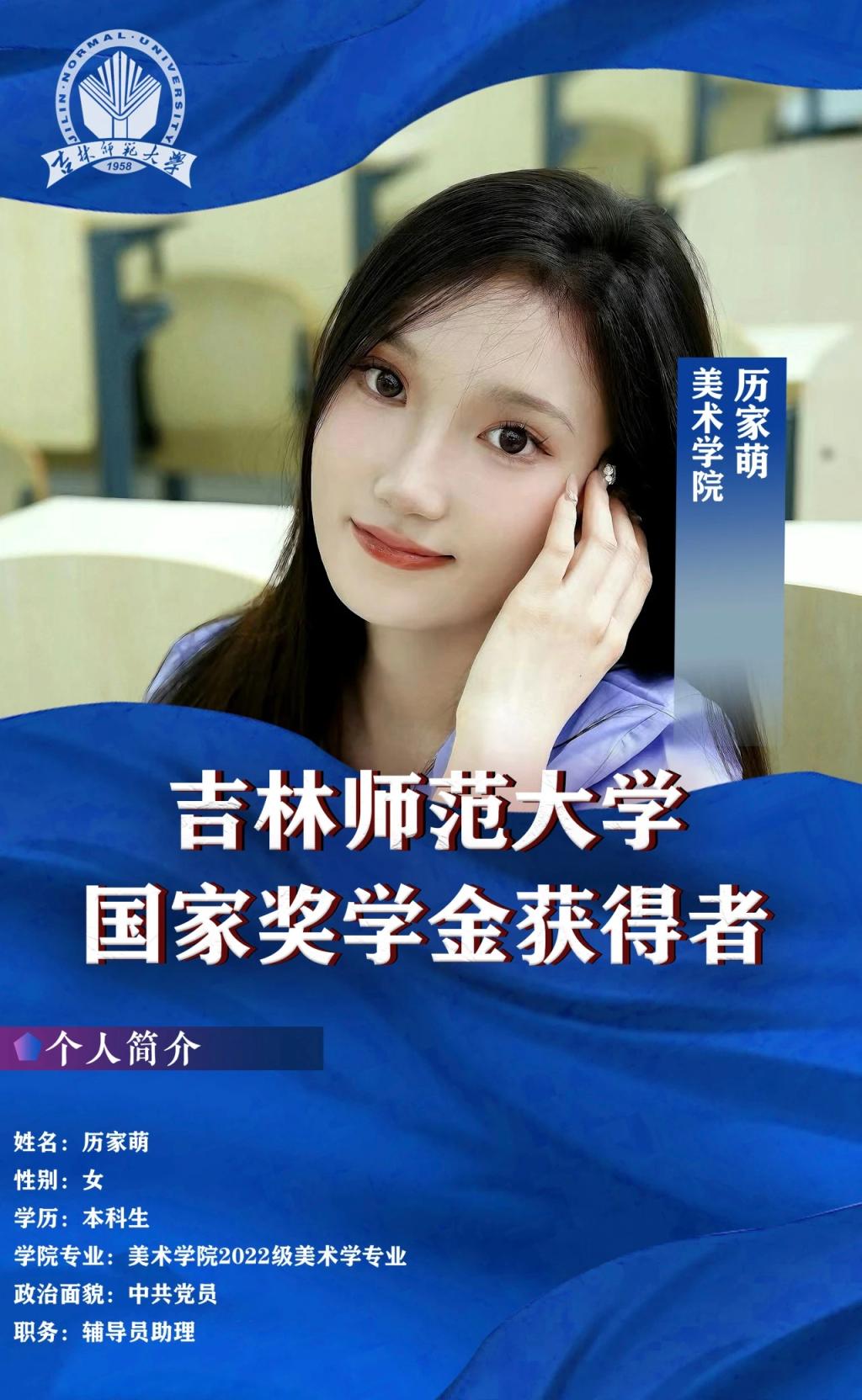 历家萌同学以艺载道,积极投身于志愿服务,曾多次担任公益活动的志愿者,用行动传递爱与温暖。在校园中,她如长风万里,参与校宣传片和校歌MV的拍摄,多次担任校运动会举牌工作并参加学生代表大会等重要活动,展现了多方面的才华与卓越的个人风采。