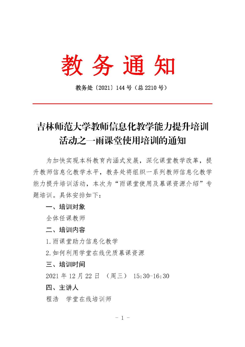 吉林388vip太阳集团教师信息化教学能力提升培训 活动之一雨课堂使用培训的通知