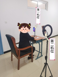 3.考前20分钟,监考教师1通过一号机位和二号机位检验考生考试设备、机位摆放是否符合要求。监考教师2向考生宣布考试纪律要求、违纪行为处理办法、考试流程和其他考试相关要求。
